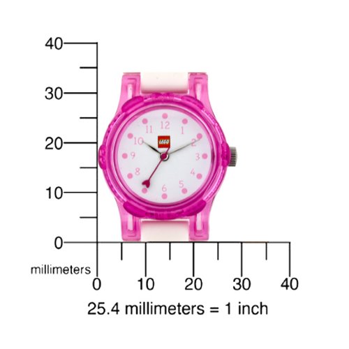 Take a little treasure, where you go with this super sweet LEGO ® Kids Watch. interchangeable components allow a custom look. Hypoallergenic, pieces of polycarbonate. Button closure for easy on and off. It comes with a chest full of LEGO ® bricks can be placed decorative throughout the day. Silver analog clock. Quartz movement. Water-resistant to 165 meters. Dimensions: Face: 26mm x 26mm bandwidth W H.: 18 Tape Length: 5 1.00 oz