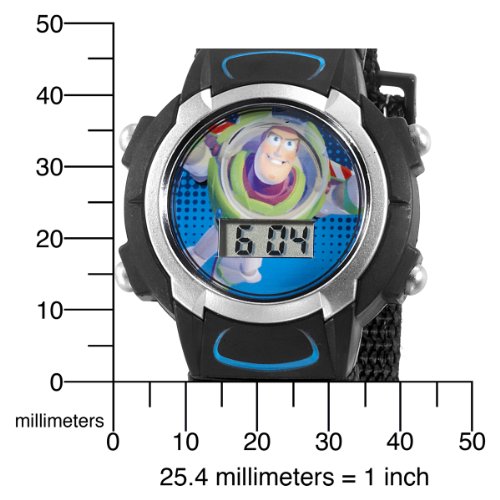 Young fans of the animated film Toy Story 3 love the colorful look and versatility of the Disney Kids' Toy Story 3 LCD straps made interchangeable lenses. The dial features a picture of Buzz Light year, and a digital LCD display with hours, minutes, seconds, day, date and reading. Oversized sports watch is black plastic with blue accents and a strong window of the dial in hard plastic. Children can turn the clock by three nylon straps black, neon green and bright blue dress. Each volume contains a logo stitched on the Buzz and Velcro to facilitate change. Based on knowledge Japanese quartz movement, this Toy Story 3 September LCD Watch children infinity and beyond. And, as Buzz would say, clean style with colorful gift bag, take extra bracelets, and in a place where "no one is left behind."